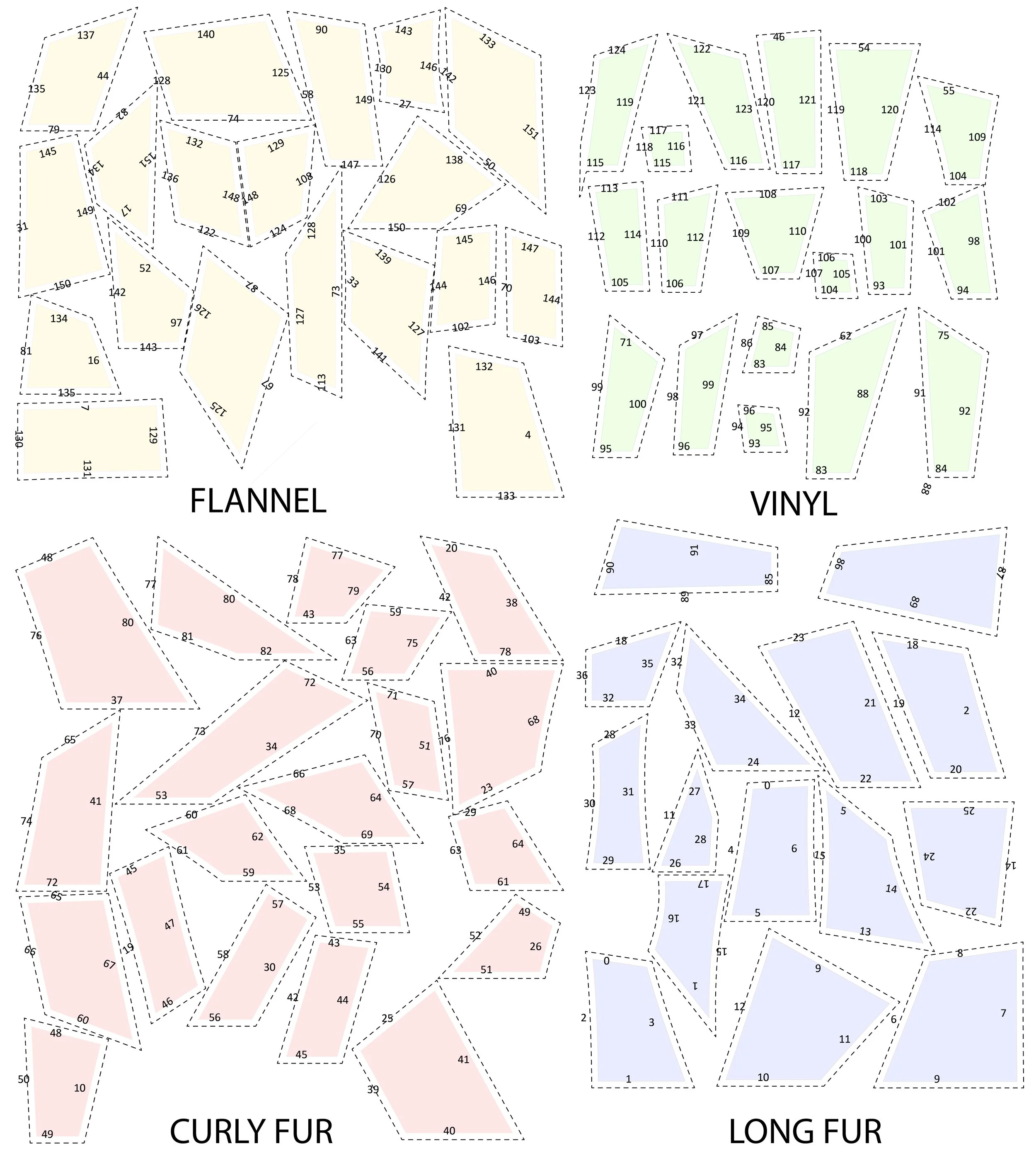 MATERIALS: Various fabric, stuffing, thread